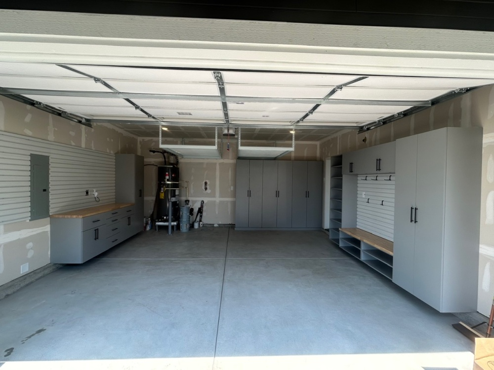 When building garage cabinets, it's important to keep in mind that this is probably the "roughest" place in your home, and the place where cabinets are most susceptible to dings and breakage. With this in mind, you have nothing to worry about when using our custom cabinet line because we GUARANTEE our workmanship and cabinets for the life you own your home!